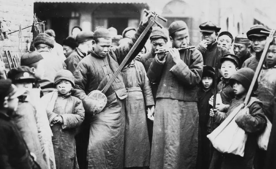 街口这几位拿着板胡和笛子,站定就唱,围的人越聚越多,小孩儿踮着脚探头,曲子一转弯,心里就发酸,懂的人知道,他们是靠手艺吃饭的硬汉。
