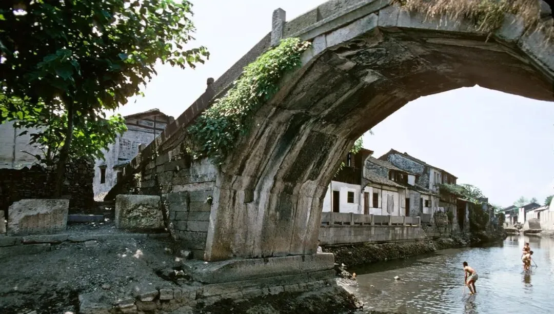 这个桥洞的肚皮上,能看见石块的纹理,水草贴着岸壁晃,太阳一偏,桥影像被削去一角,船从下面穿,篙声在洞里回三回。