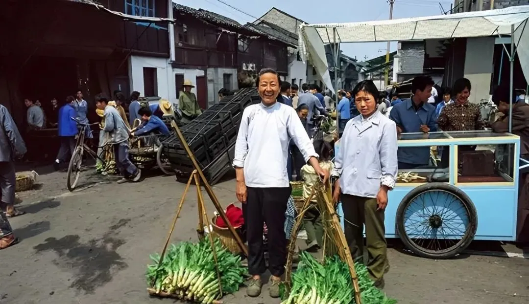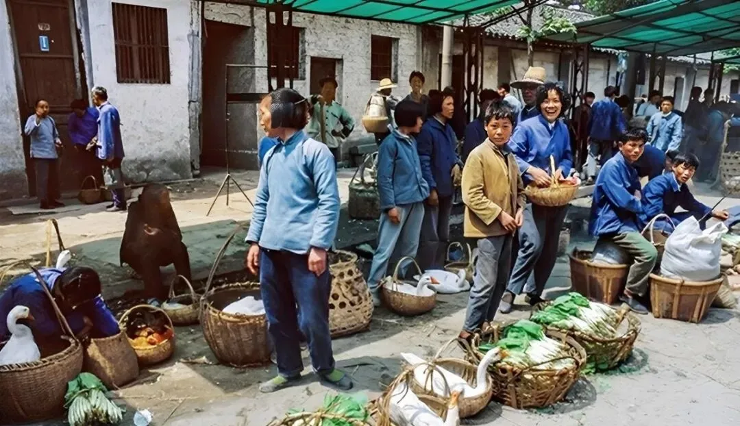 这张里篓筐挤满了,白菜帮子水灵灵的,白鹅伸着脖子咯咯叫,卖菜的笑眯眯,手心全是藤蔑磨出的老茧。