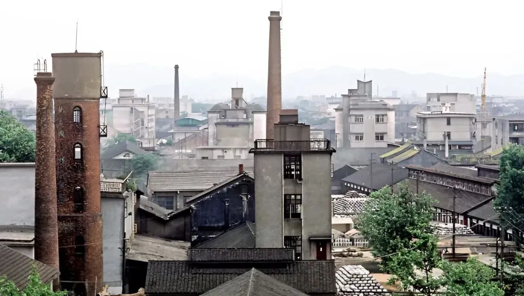 两根高烟囱直直戳天,旁边的圆桶状水塔红颜色醒目,酒精塔一字排开,那会儿的城里,最高的不是写字楼,是厂房的烟囱。