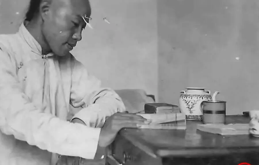 这桌面上的器具叫茶罐、瓷杯和毛笔,学生把书横着摊开,手掌按着纸头,笔在旁边歇着,眼睛却紧盯一行小楷,像在默背,也可能在誊抄,奶奶说,你别趴太近,眼睛会花的,学生笑笑,把茶杯转半圈润润喉,继续挪行,那年月,抄一遍就像把知识过一遍手,慢,可结实。