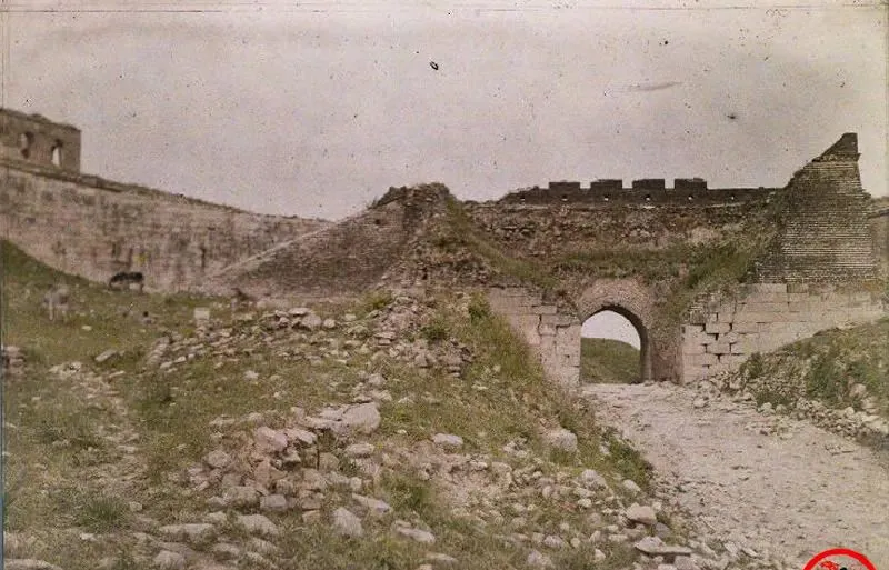 说到这里,得把老照片背后的门道也摆明白,图中这批彩色影像出自上世纪十年代的外籍摄影师,属于“地球档案”的一部分,彩色在那个年代就像给黑白世界点了一盏马灯,可亮归亮,照出来的却是年久失修的真相,墙角塌了,箭窗空了,门道里乱石堆着,不美化,也不掩饰。