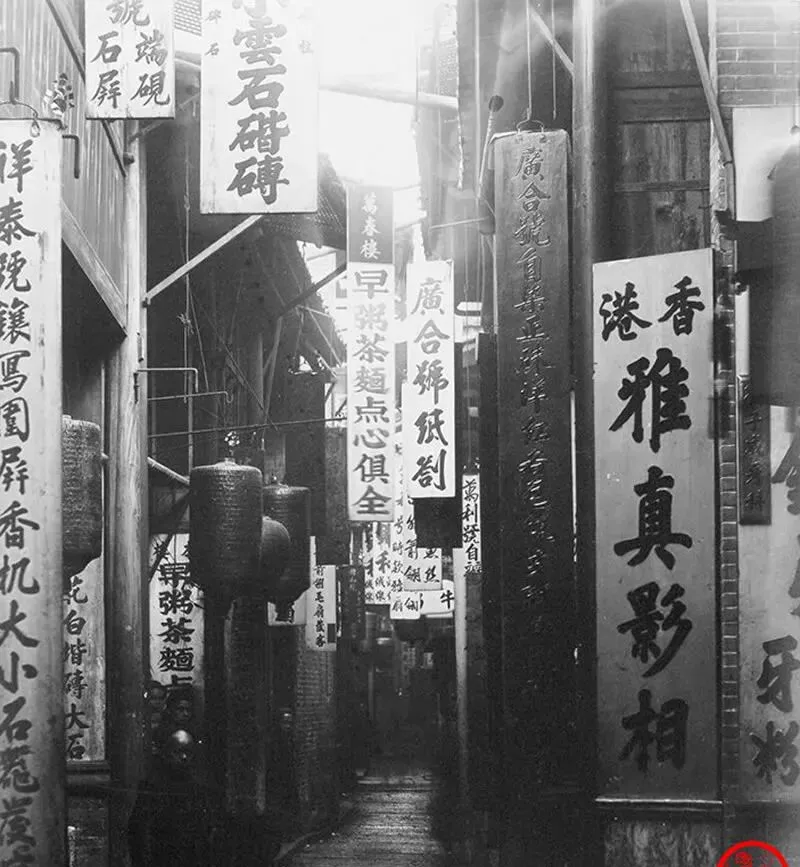 这个密密麻麻的是铺子招牌,木板刷白或漆黑,大字一排排往下挂,卖砚台的、刻石碑的、做早茶的,最显眼是雅真照相四个大字,抬头全是字,低头全是人,走在这样窄巷里,风一吹牌匾飒飒响,我妈笑说这就像在市场里走错道,抬头全是“吆喝”,以前全靠一块牌子拉生意,现在一部手机把招牌装进口袋,巷子却静了。