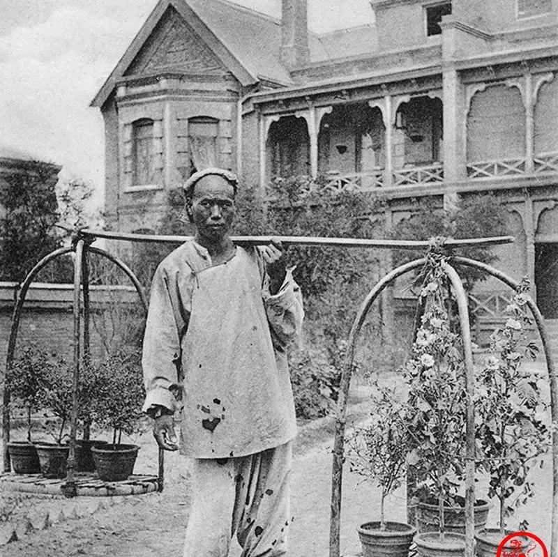 图中这挑子叫扁担,前后两架竹圈像小棚子把盆景罩住,花匠肩头压出一道深痕,手指关节上都是泥巴印,走街串巷时要把步子踩稳,不然一歪,壶天壶地就得撒了,小时候在弄堂口见过卖花的人,喊声不大,靠的是花香自己飞出去招人,买花回家一放,屋里立马有了日子味儿,这活是真累,香是香,饭也是真难吃饱。