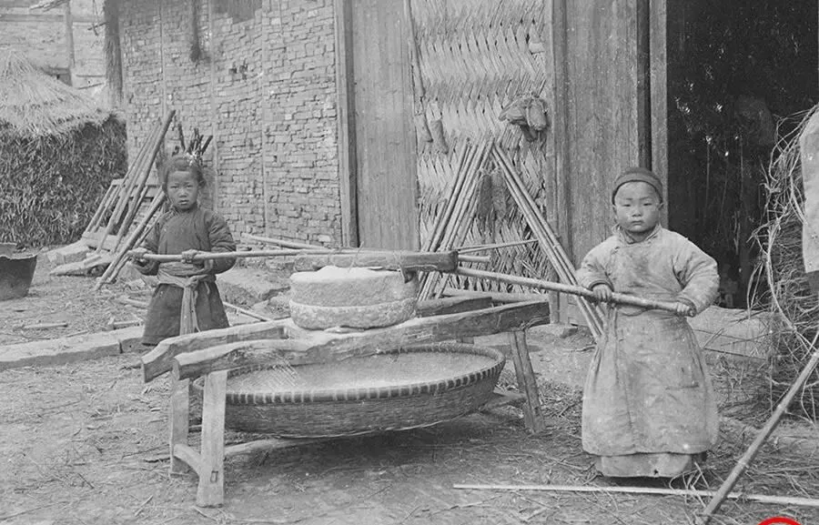 这个石头家伙叫石磨,上磨盘中间一个眼,白面从眼里倒下去,孩子一左一右抓着木把手,齐心转,磨齿吱呀吱呀响,边上一只大簸箕正等面落下,我姥爷说那时候穷,娃也得上手,推磨推久了,胳膊能拧开紧盖的罐子,现在磨面一拧电钮就转了,可人也越来越不爱嚼慢饭了。