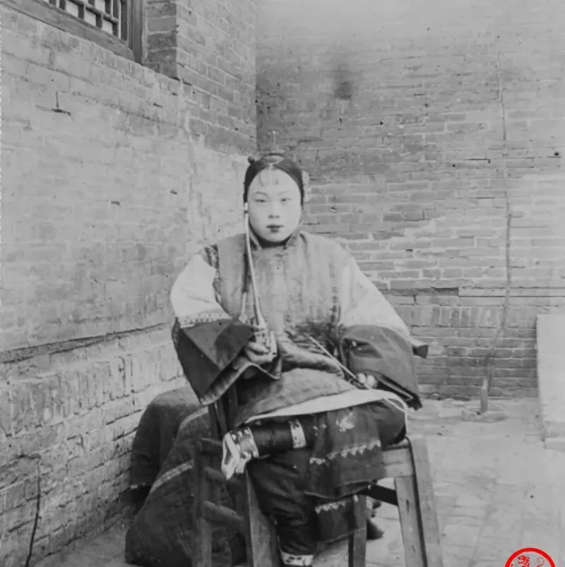这个细长的玩意儿叫烟杆,女主人坐小木椅上,绣花袄袖口一层一层,足下是挤成弯月的三寸鞋,她拿烟杆的手很稳,目光也不飘,我妈说老照片里常见女人抽烟,那会儿不丢人,反倒讲究,轻烟一吐,像在唇边点了朵花,以前把束缚当体面,现在把舒坦当本分,话不多,意思都在这只鞋里了。