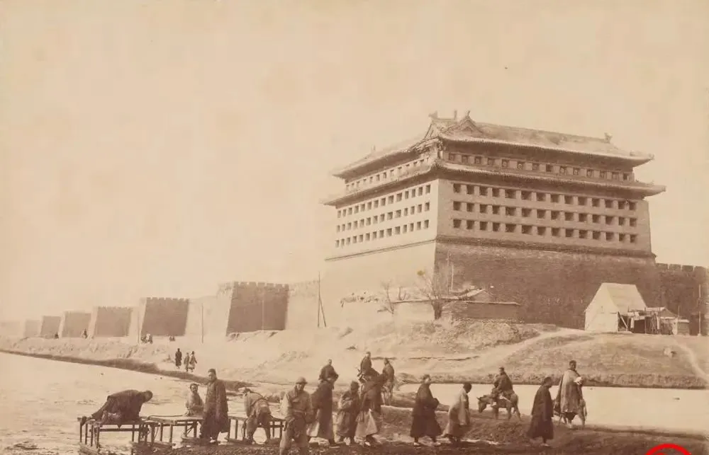 这个方正高台上立着的叫角楼,叠檐木构压着一层层灰青色琉璃瓦,墙身密布箭窗,看着像棋盘眼儿,脚下绕着一条城河,水不深,岸边的木架子搭成临时桥,行人挑着箩筐慢慢过,我奶奶说,老城就是靠这城墙和河护着的,可越到晚清,护得住的也就剩个体面了。