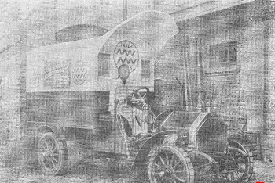 这个方头方脑的家伙叫碳酸饮料运输车,车厢做成篷顶,侧壁刷着商标,黑白照片里还能看清那几道波纹字样,司机穿着白围裙,像是从灶台边刚下来,车尾估摸着放的是木箱和玻璃瓶,拐进弄堂一停,叮当响的就是瓶碰瓶的脆声,妈妈说上海那会儿有鲜橘汽水,酸甜开胃,天一热孩子们追着车尾巴跑,现在谁家楼下不是一堆外卖车呼啦啦过去,以前送汽水靠汽油和膀力,现在送饮料靠电池和算法。