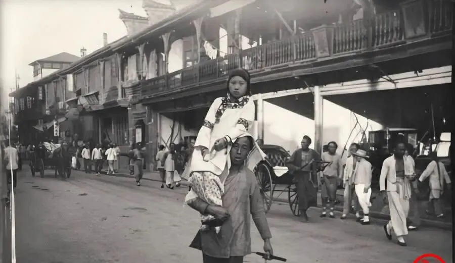 晚清老照片:龟奴肩扛青楼女子去陪客,张之洞个子矮气场大。