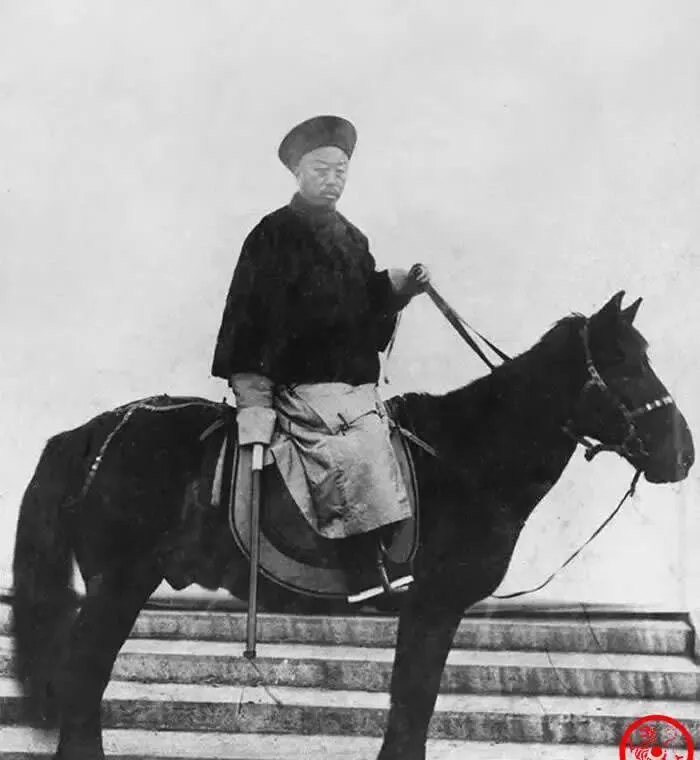 这匹马不骄不躁,毛色发乌,马鞍厚厚垫着,挂一条短火器在鞍旁,王爷一手勒缰一手扶鞍,脚下一双千层底露着白边,台阶三四级,像是刚要下去巡场,照片里风不大,衣袂却有点鼓,估摸着是人起了劲儿,小时候听爷爷讲,九门提督管的就是城里头的门和兵,夜里巡街遇到火警盗案,都得他说了算,放在现在说句玩笑话,相当于半个“首都安保总指挥”。