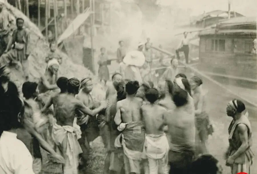 晚清老照片:大家庭五代同堂场面壮观,苦力为争地盘打群架。