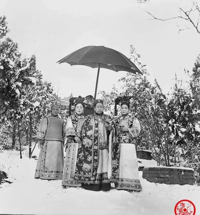 这个伞大得像一朵乌云,伞下立着的就是太后,披着团花大氅,脚边雪没过鞋面,两旁宫女扶着走位稳,弯道处还要伸手搭一把,照片里的树披银装,倒显几分清冷的雅,奶奶看见总嘟囔一句“贵人也怕滑倒”,是啊,天底下的雪都一个温度,差的只是脚下的路有人扫没。