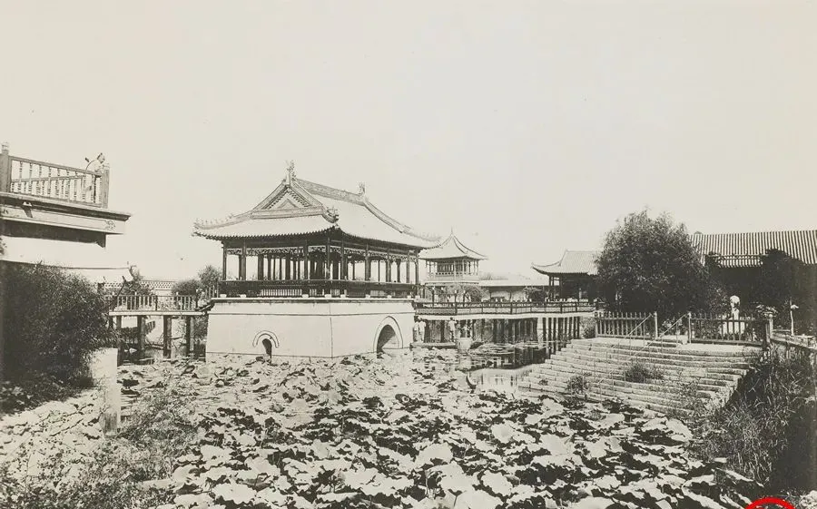这处园子叫李公祠,临水架亭,桥洞是半圆的,栏杆一节一节排过去,院子里应是香火不断的去处,水面浮着残荷,木构屋顶四角翘起,按说祭祀的地方该有个肃穆范儿,可照片里能看出衰败的影子,石阶缝里冒草,像没人打理多时了,那时候的变化快,风头一起,祠庙也跟着起落。