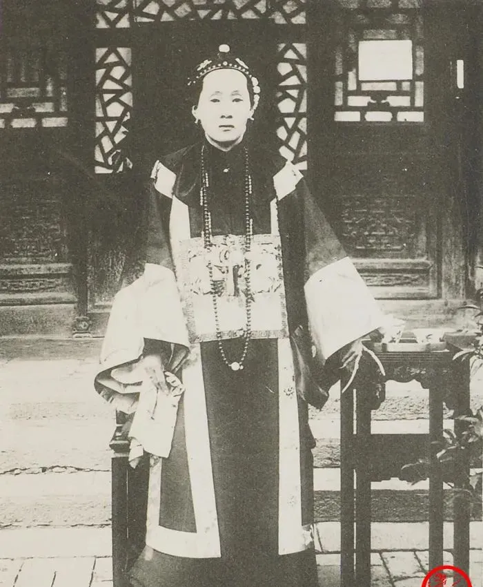 这位太太身上的叫命妇补服,胸前一块补子把身份摆明白,珠串垂到腰口,脚下却踩着花盆底,鞋跟中空,走起来得小心翼翼的挪,汉家衣纹配旗人鞋样,混搭在那时不稀奇,家里要是汉军旗的出身,这样穿更顺理成章,妈妈看这张照片笑,说这就跟现在人上身中式下身运动鞋差不多,方便和体面之间总要找个折中。