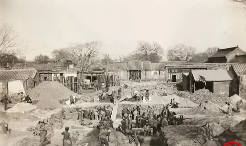 图中这片热闹的工地就是协和医学堂的基址,土堆一座连着一座,木板斜搭成临时跳板,工匠们肩挑手抬,石灰味儿冲鼻子,远处一排灰瓦小屋像看热闹的邻居,挤在墙根不说话,奶奶看了这张老照片笑我,你别看乱糟糟的,那就是新学问起地基的模样。