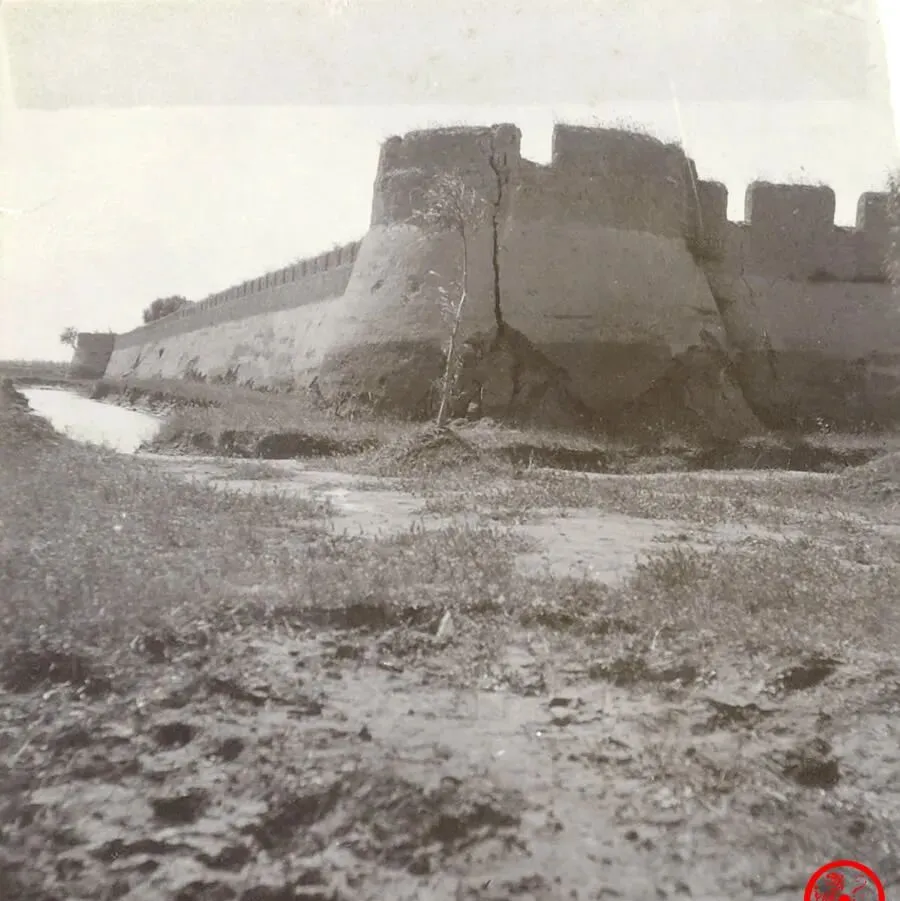 图中这堵垛口残缺的城墙叫城垣,夯土混砖,外裹灰浆,墙身鼓肚子一样往外撵,竖着一道黑缝从女儿墙下直劈到根部,雨水顺着裂缝灌,脚下壕沟里只剩一汪浅水,远处杂草攒成片,一看就是多年没人修补,奶奶说老城墙怕的不是敌军,是渗水冻胀,人心要散了,墙就先塌了。