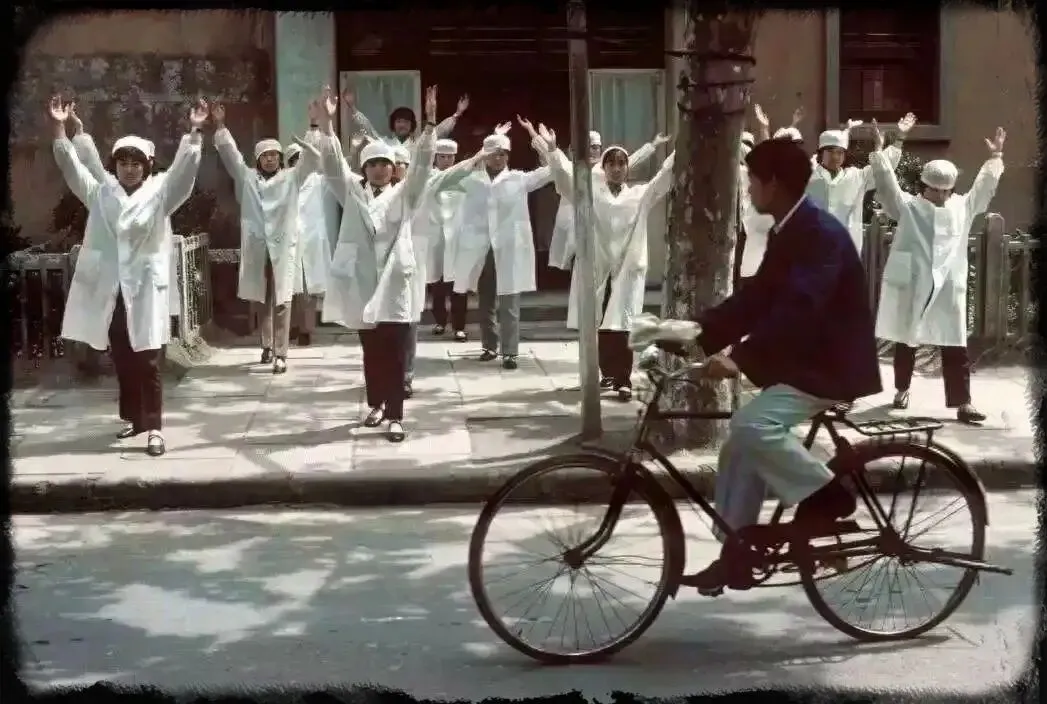 最后这张,据说是上海钟表厂的职工,上班之前要先做早操。