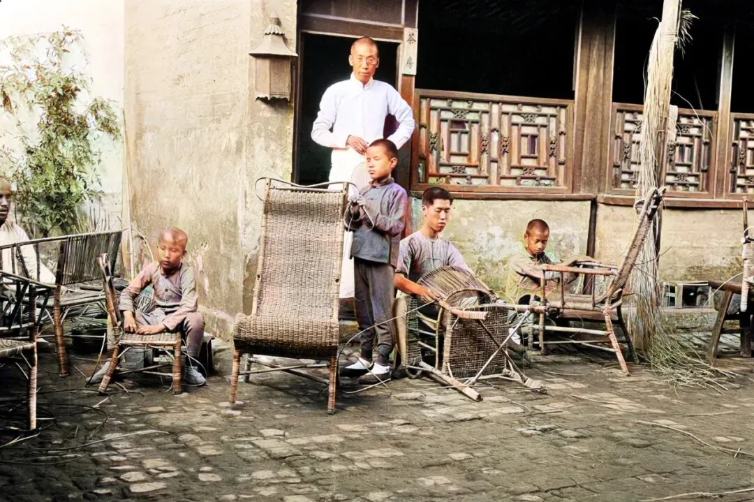 有人说他们是被雇来的盲人童工,也有人说是郊外盲童的手艺班,照片里能看到孩子的眼神发直,动作却不慢,手沿着边框摸过去,指腹找到卡口,下一根藤就自然从那儿钻进去,手记路的速度,有时比眼睛还准,老师在旁边盯着尺寸,遇到拐角就让他们放慢半拍。
