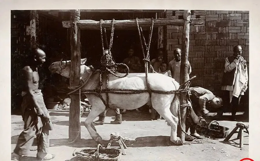 这个木框子叫绑马架,粗柱立地,横梁绞上粗绳,牲口吊在半空不至于乱踢,铁匠一手夹着烧红的马掌,一手拿钳子,蹲在蹄下咔咔削蹄,边上箍着铁圈的炭炉子红红的,烙上去滋的一声冒白烟,味儿冲得人眼睛发酸,孩子们围一圈看热闹,师傅抬头吼一句闪开点,小心崴了脚,等掌儿钉稳了,骡子落地一试步子,立马利索多了。