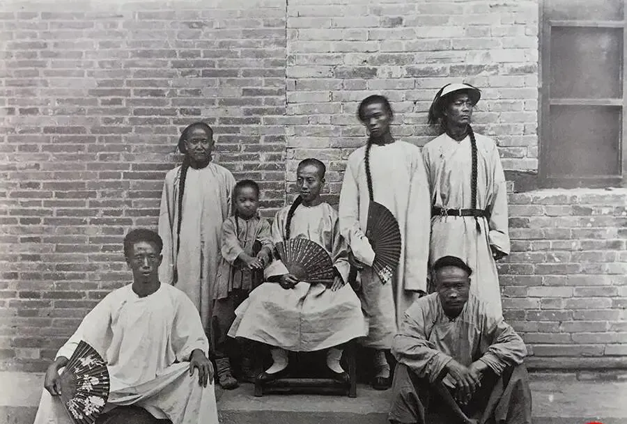 图里这些穿长衫拿折扇的叫使馆长随,眼神打量镜头不躲不闪,腰间有的别着细绳,有的戴着草编帽,奶奶说那时候给洋人差事的被叫二毛子,在胡同口常被人戳脊梁骨,挨骂也照干,图个饱饭和月钱,话糙理不糙,谁都得活下去。