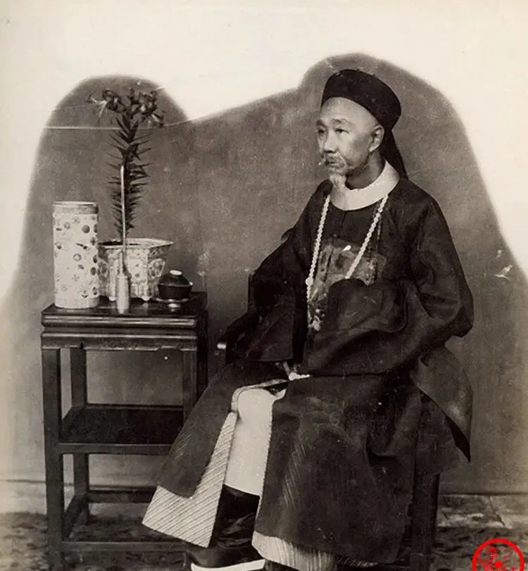 这个坐在方凳边上的叫封疆大员的坐像,案几上摆着梅瓶、笔筒、小盅,缎面袍子在灯下泛油光,脚上是白缉里的朝靴,神情里有一点清瘦和倦意,嘴角挂着细细的胡须,外公看了乐,说你看他这手势,半抬不抬,是要说话又忍住了,官场的劲儿就卡在这一下,现在领导开会拿激光笔比划,话头直来直去,少了点弯子。