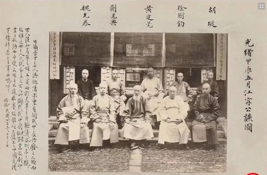 这张就是大家惦记的那张,题头写着名字,后排站成弧,前排一字坐开,衣摆整得像尺子量过,院门后额匾隐着半行字,张之洞当时正忙着洋务,和同僚在南京碰头,照片边上还有手写评注,像会后纪要一样把人名一一标出,我看了只觉踏实,以前史书的“会晤”两个字太轻,现在看清楚了,原来握手言谈也是要挤在院子里对时辰的。