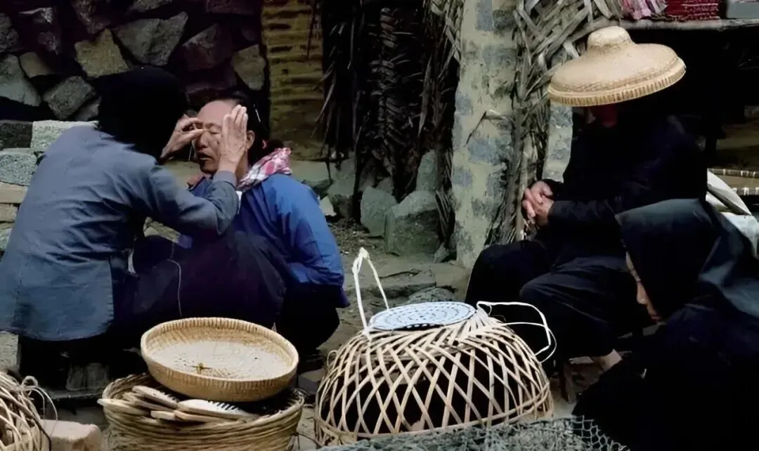 两张老照片:河南人为啥爱蹲着吃饭?带弟弟妹妹的小女孩好懂事