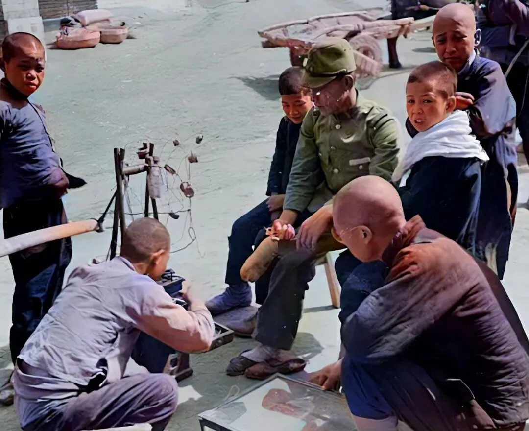老照片集:延安民兵的独特武器,日军修鞋被围观,泰山上的乞丐。