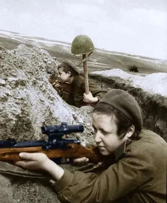 壕沟里举着钢盔的动作叫诱敌,前面这支木托长枪装了望远镜,姑娘的脸冻得发青,呼吸憋着不出声,后头的同伴把盔扣在工兵铲上慢慢探,等对面狙击枪一响,准星就落下去,奶奶看过这张时叹了一句,谁家闺女愿意学会这种沉得住气的狠。