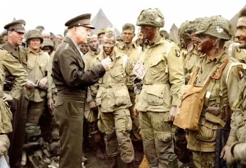 这张合影里的讲话叫动员,围着他的那群人是空降兵,脸上抹着迷彩膏,全身都像沾了泥,谁也不笑,谁也不眨眼,指挥官把手攥成拳在空中一划,话不多,意思够硬,几个小时后他们就会跳进黑夜里,队列里有人把幸运牌紧紧捏在手心里,掌心全是汗。