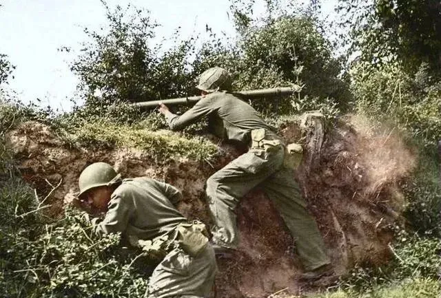 土坡上那支长筒叫巴祖卡,射手正顶着肩膀放火,后喷口喷出一股白烟,装弹手就地一猫,耳朵下意识往里收,听见前面装甲车被捅了个闷响,泥土扑了他们一脸,那时候反坦克靠两个人合着使劲,现在人家一辆步战车上就挂满导弹,时代真是换得飞快。