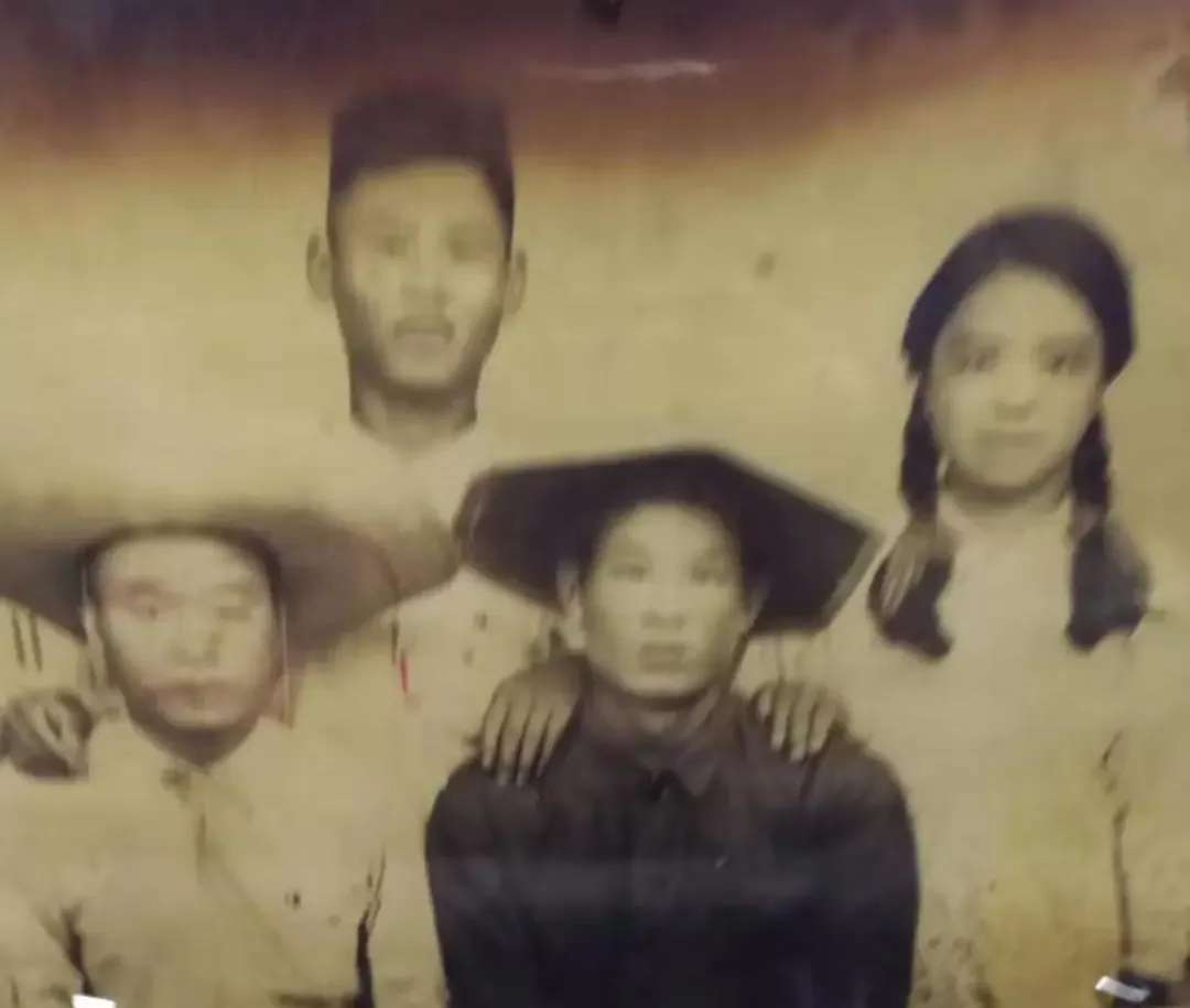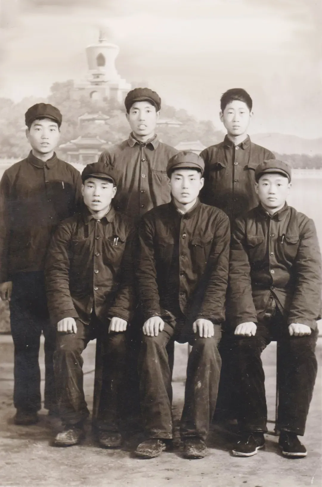 1973年12月,桓城人民公社逯家大队赵士仁(前排中)和毕绪来(前排右)应征入伍,一起在大队实验队劳动的好友与其合影留念。赵士仁入伍后,在党的培养下成长为师装备部部长;毕绪来参加对越自卫反击战荣立三等功,后转业到桓台县城乡建委工作。(照片提供者:赵士仁)