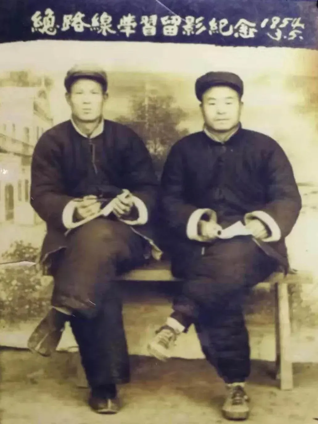 1954年3月,桓台组织了“总路线”学习班,参加学习的老官庄支部书记牟继贵与一起参加学习的村干部孙同昌合影留念。(照片提供者:孙荣浩、苗德育)