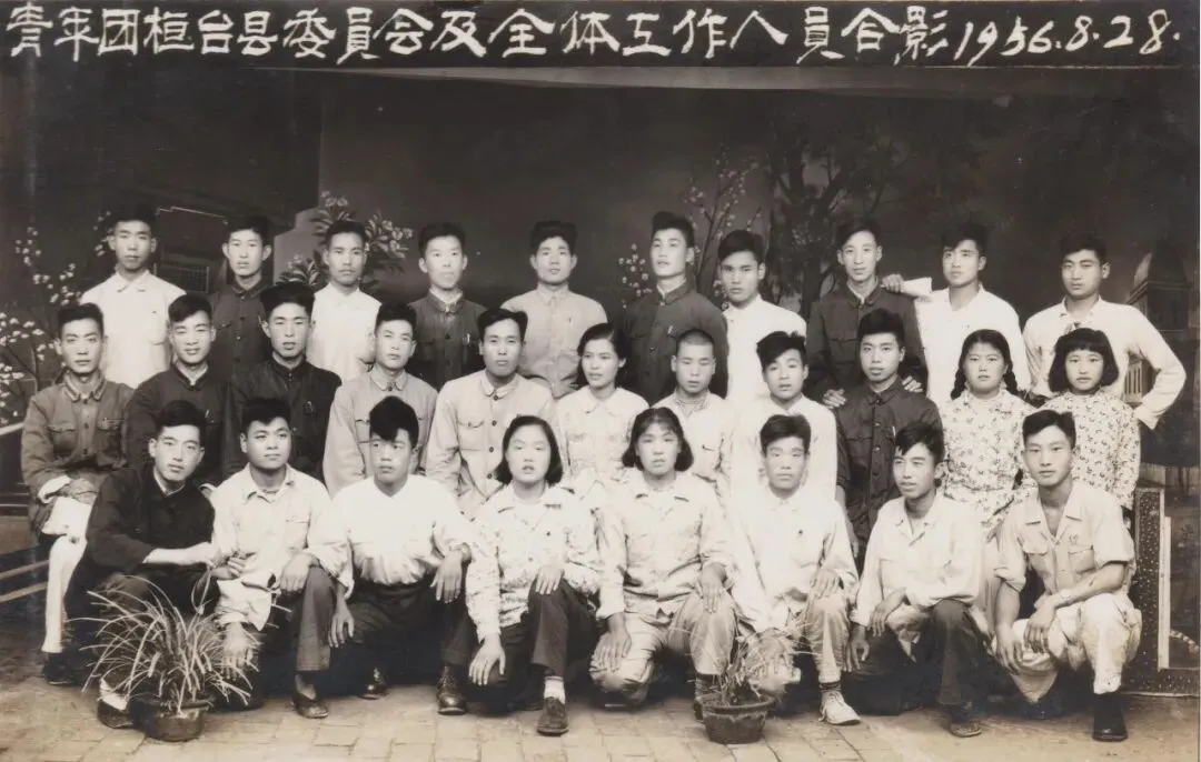 1956年8月28日,共青团桓台县委员会全体工作人员合影。中排左六是共青团桓台县委书记穆连英。(照片提供者:李秀福)