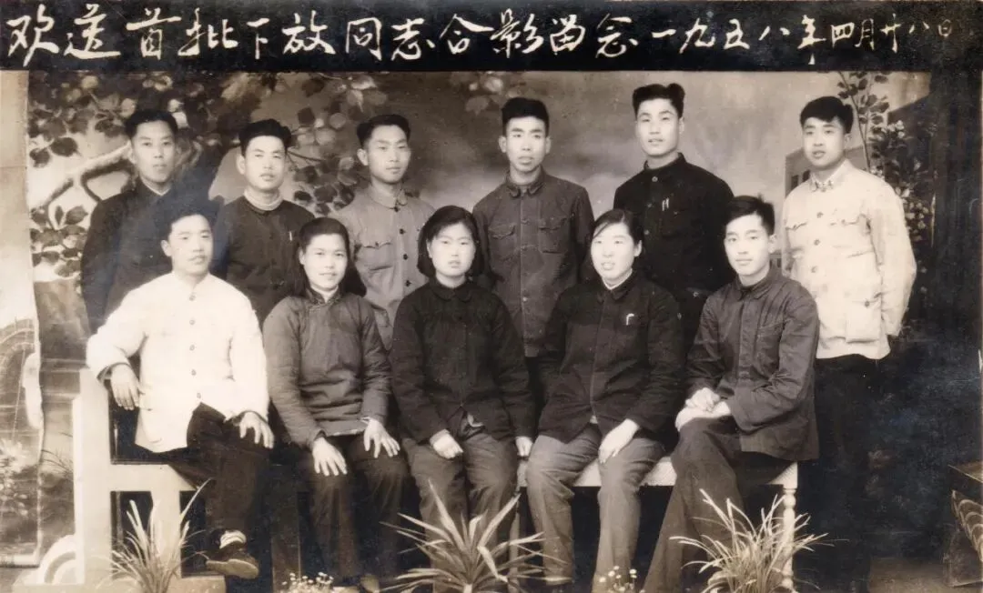 1958年4月28日,共青团桓台县委欢送首批支援农业第一线的同志合影。前排左二是团县委书记穆连英,后排左一是团县委办公室主任刘宗泽。(照片提供者:刘向东)