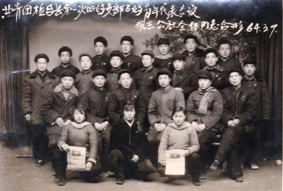 1964年3月9日,参加桓台县第一次“四好支部”“五好青年”代表会议的侯庄公社全体代表合影。二排左三为团县委办公室主任刘宗泽。(照片提供者:李秀福)