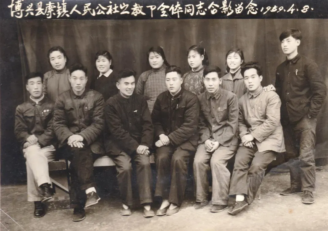 1959年4月8日,博兴县索镇人民公社宣教部全体同志合影,前排左三为高士厚。(照片提供者:高飞)