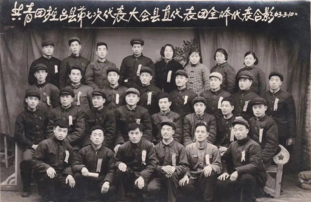 1963年3月10日,共青团桓台县第七次代表大会县直代表团全体代表合影。(照片提供者:孙成仁,第二排右一)