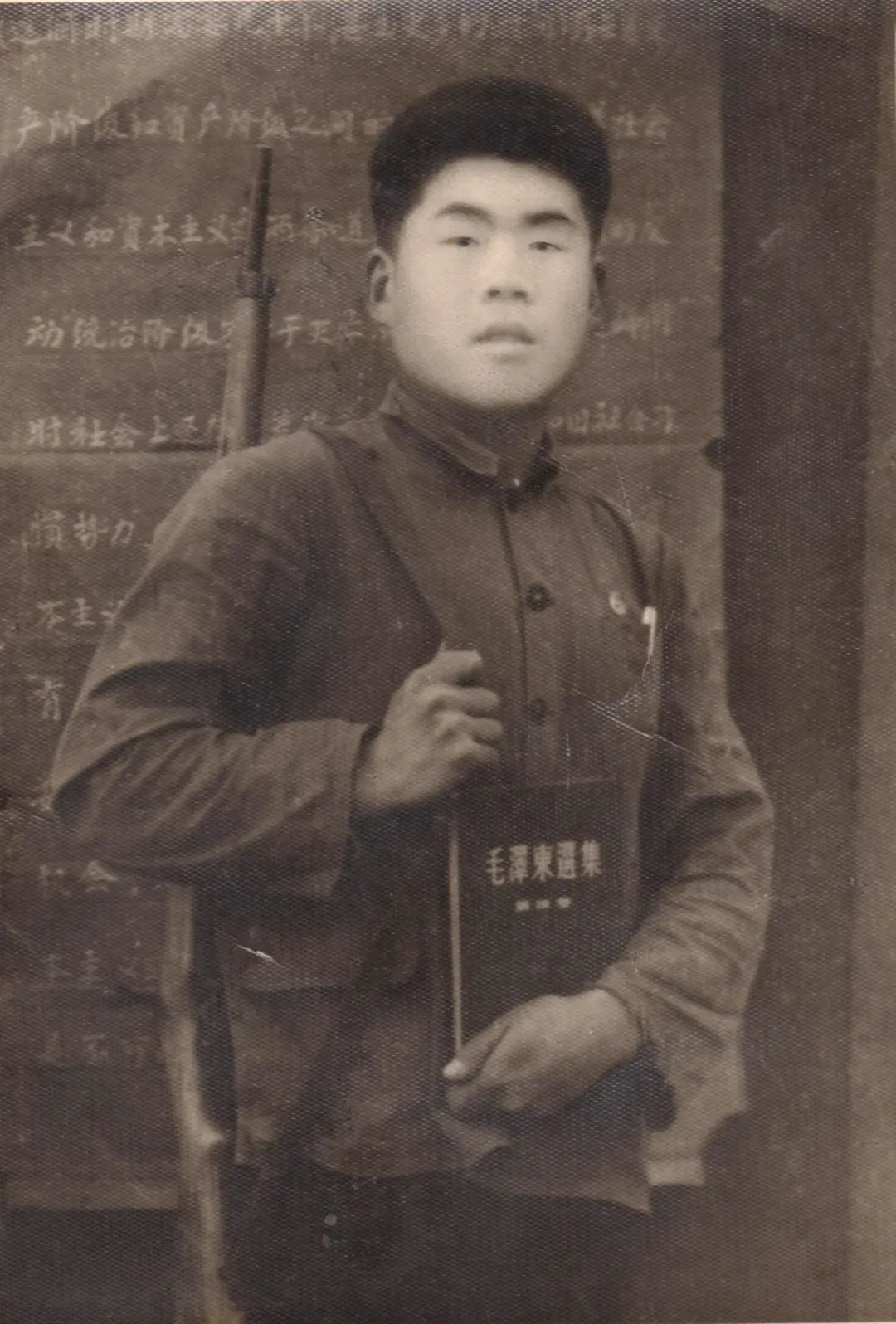 1966年3月,索镇人民公社西镇大队举办阶级教育展览,按上级要求,展览现场需基干民兵武装站岗。图为时任大队会计、基干民兵队长于克敏在武装站岗。(照片提供者:于克敏)