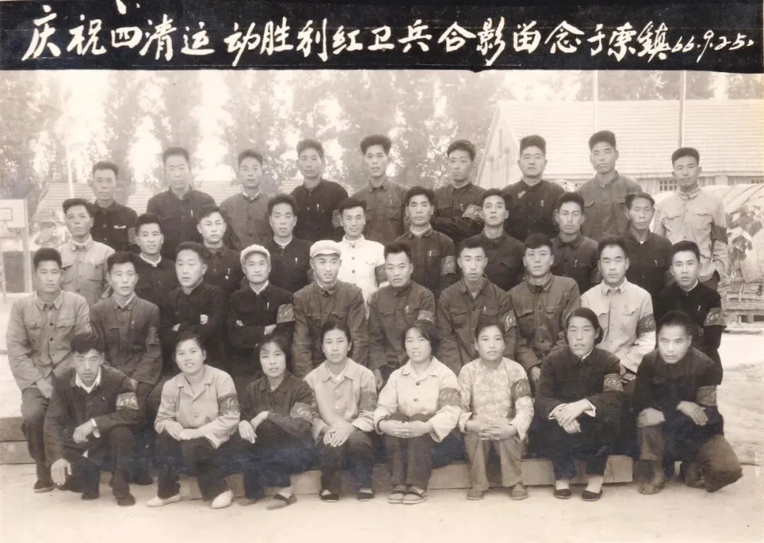 1966年9月25日,桓台县供销社的烟棉公司、生资公司、土产公司的红卫兵在烟棉公司大院合影,庆祝“四清”运动胜利。(照片提供者:段怀书,后排中)