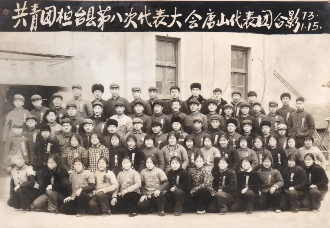 1973年1月15日,共青团桓台县第八次代表大会唐山代表团全体代表合影。照片后排左八为赵奎,时任桓台县造纸厂团委书记,后任中共桓台县委书记。(照片提供者:张连忠)