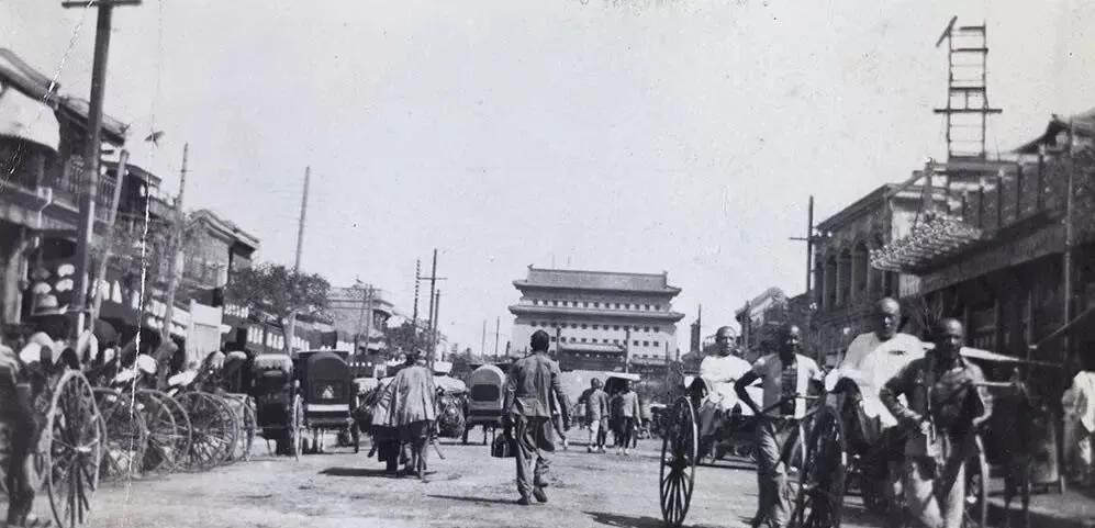这条正对着的大街叫正阳门大街,远处箭楼像扣在街尽头的印章,两边行栈招牌挤得满满,车轮在石板上碾出亮道,挑担的肩窝处垫个布卷,车把把头汗湿一圈,太阳正毒,行人眯着眼,以前来这儿买鱼买布买珠子,现在成了拍照取景的好去处。