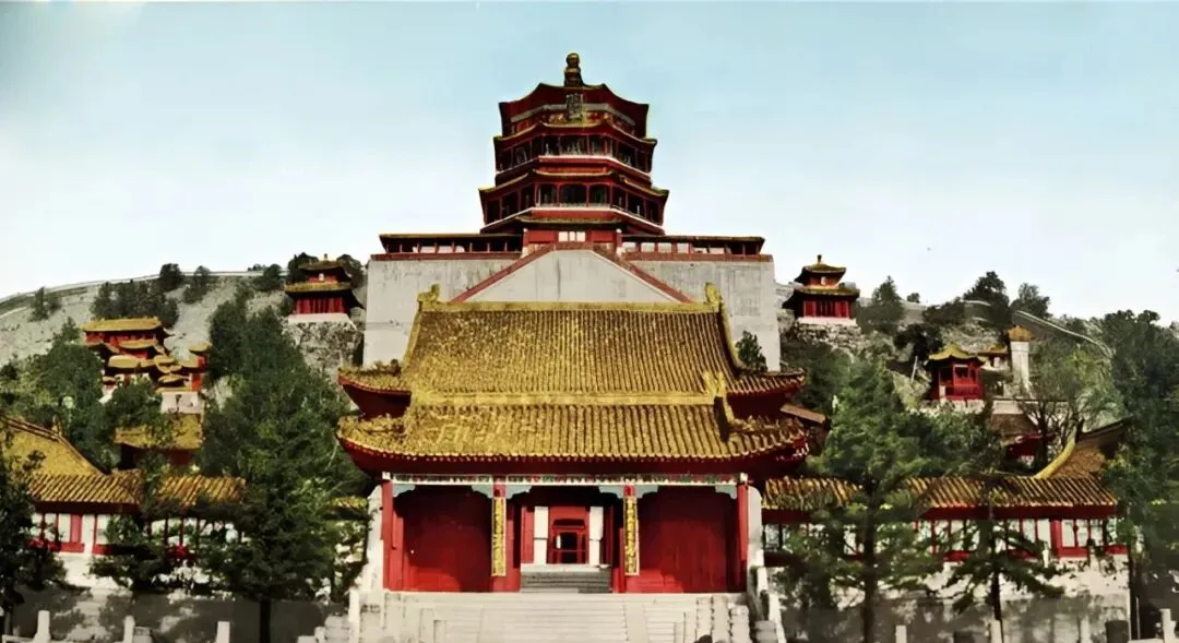 山上这座叠着几层檐的高楼叫佛香阁,底下殿门紧闭,台基厚得很,爬上去得歇两口,外婆说那会儿逢庙会,山下卖糖人、吹糖球的一个挨一个。