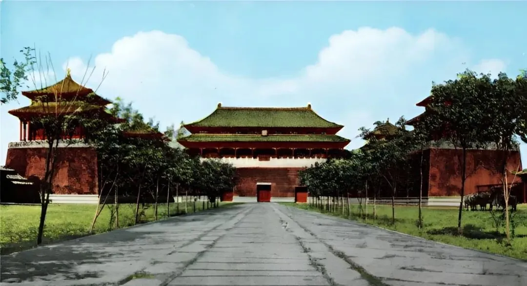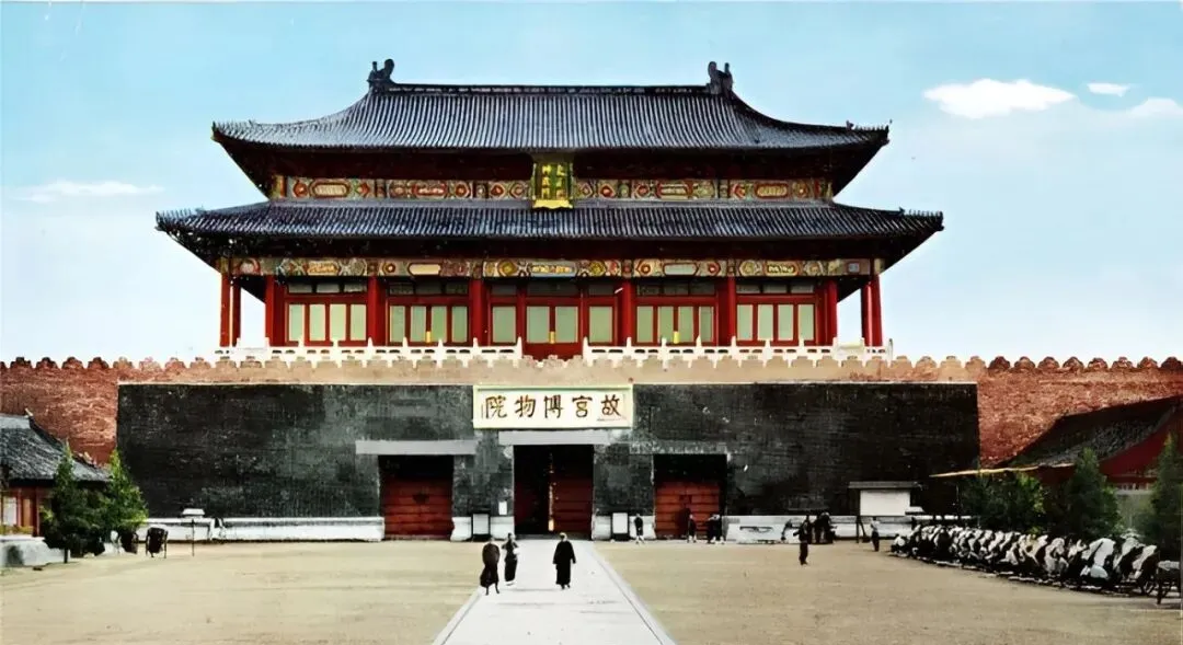 北门这座写着“故宫博物院”,黑瓦红柱,门前甬道笔直,开馆那几年,学生结队进去看展,书包都抱在胸前,生怕碰着文物。