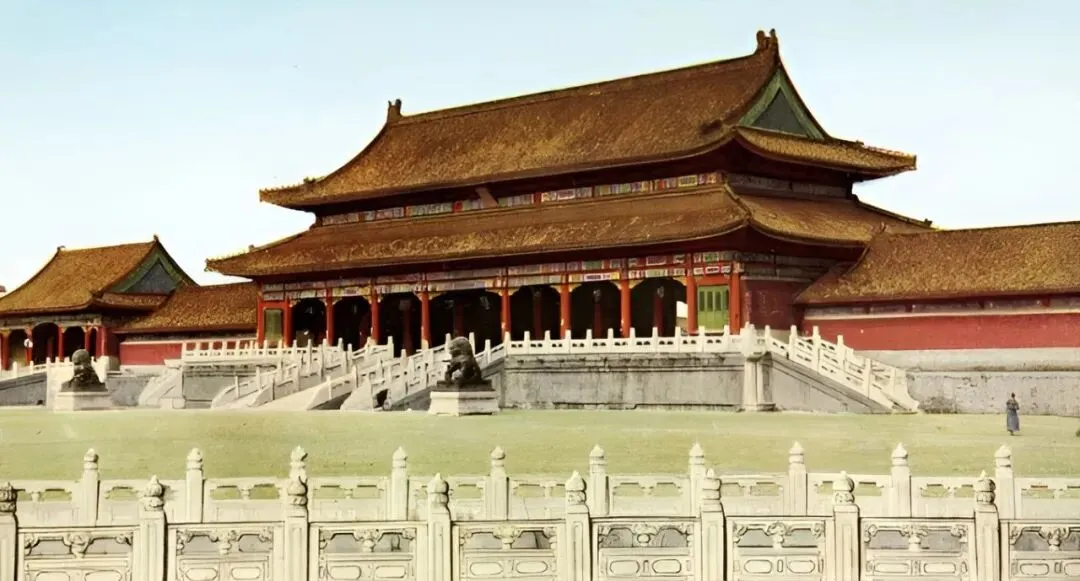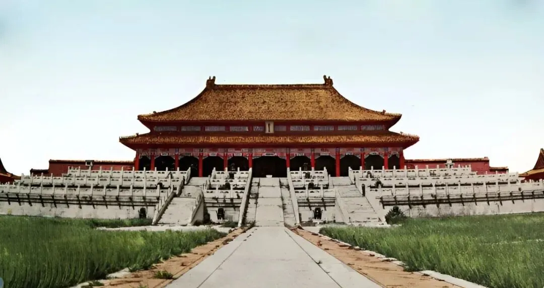 远处这座高台大殿叫太和殿,甬道直直通上来,石栏杆上的云纹一溜儿过去,太阳一照,正脊上的兽都亮了眼,奶奶说成亲出行的大典,鼓声从这儿滚出去。