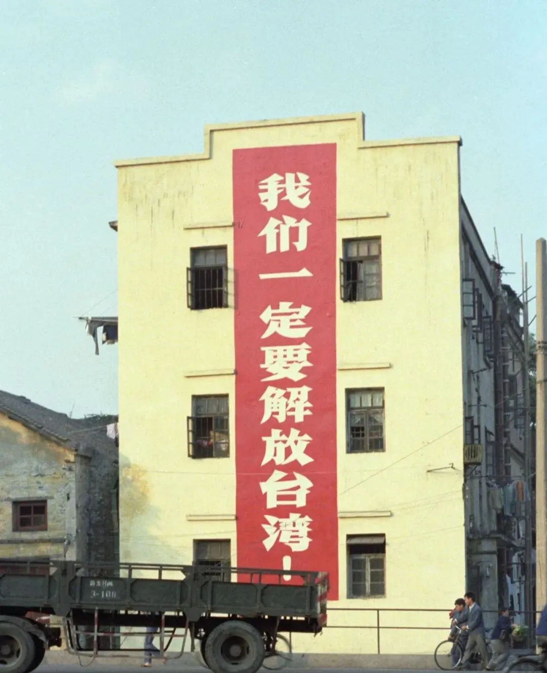 这面楼墙上刷着红底白字的大标语,直直垂下来,字体方方正正,远远就看见,街口有解放牌卡车停着,风一吹,旗子和衣襟一起抖。