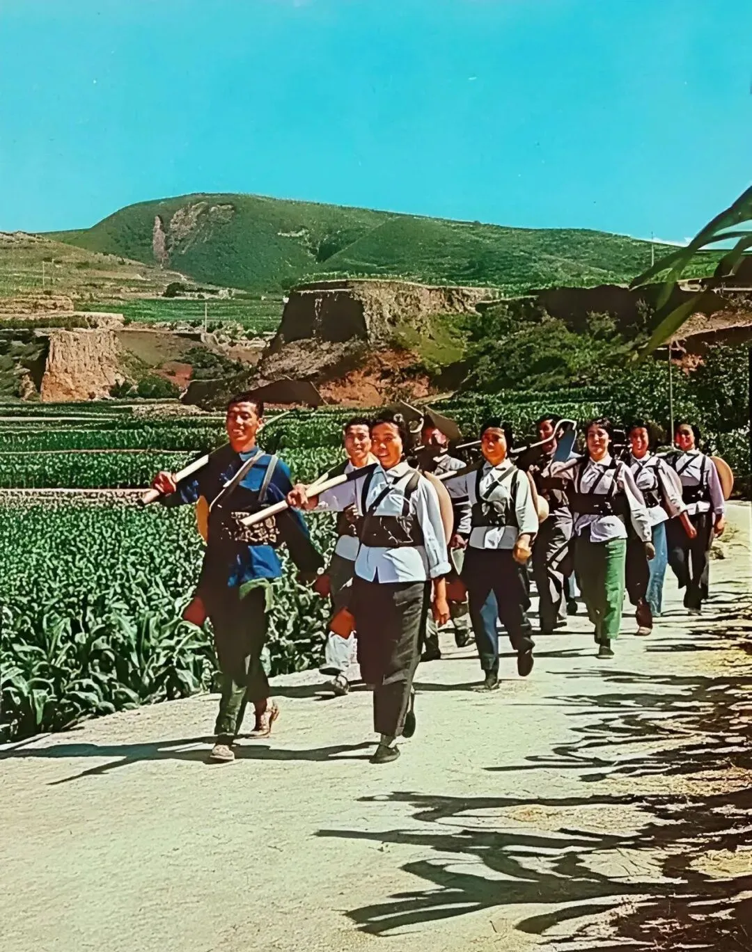 这队人胸前斜挎的是民兵背带,腰间挂着水壶和急救包,肩上再扛把锄,走路步子一齐,白天下地晚上拉练,两手都不耽误,奶奶乐呵说,那时姑娘练队列走得可齐咧。