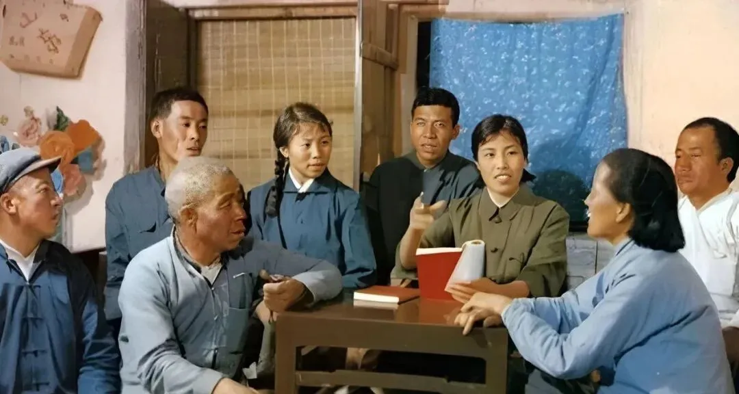 屋里这张方桌叫八仙桌,老少围拢,茶缸子冒着热气,翻开小红本子一页页对着念,谁家地块到哪儿修,渠怎么分,开会不废话,商量完就下地,回头看,火车跑得快全凭车头带,一句话点明了劲头往哪使。