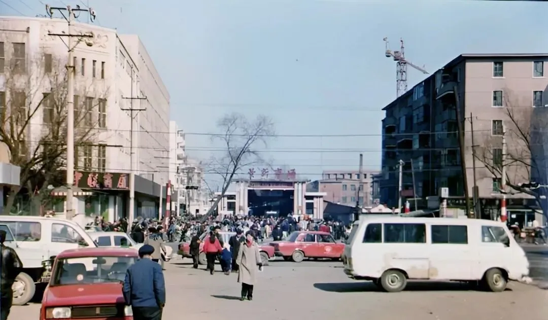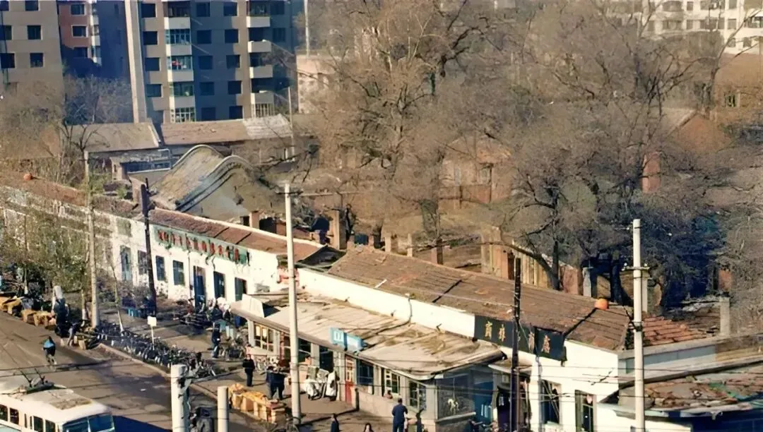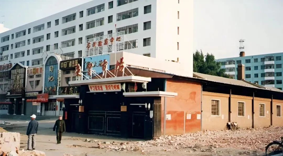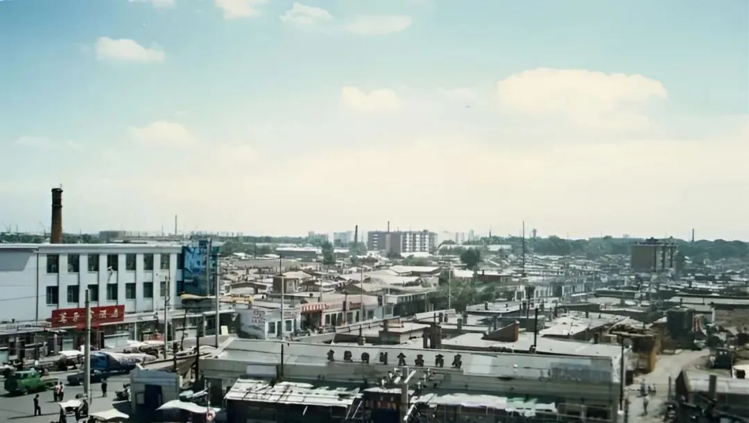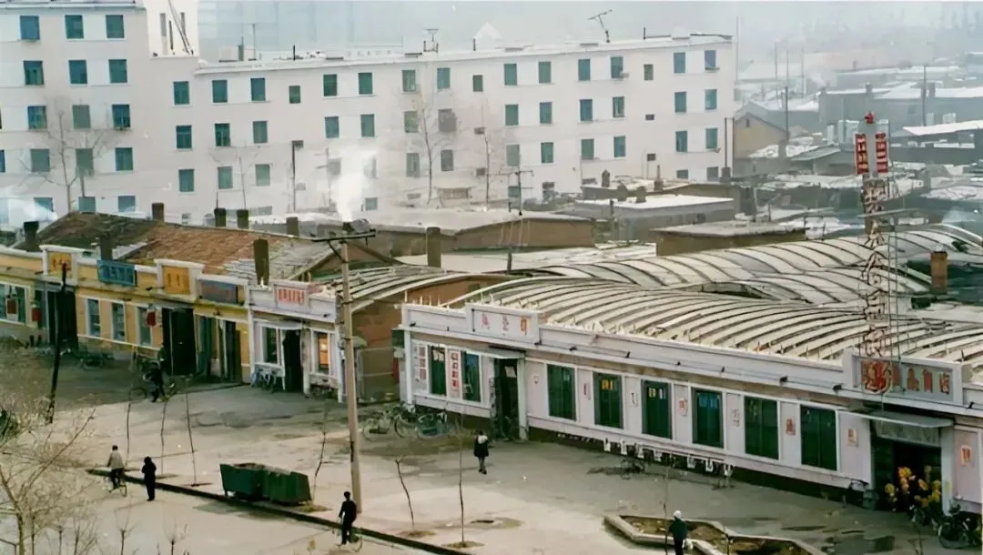 图里这片连着弧形玻璃顶的,是副食商场,卖粮票换来的糖和油,拎着走一趟能遇见半条街的熟人,嘴一碰就唠起来,天黑了才舍得回家。