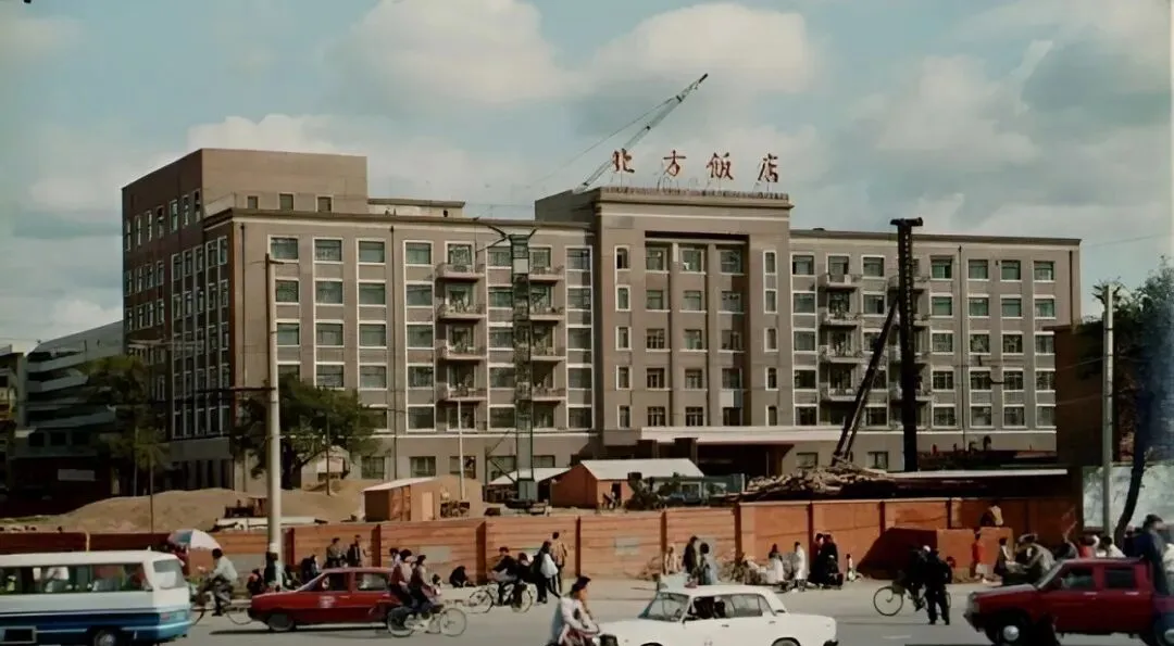 这个灰砖外立面的就是“北方饭店”,顶上吊车正旋着胳膊,围挡外一排红色小轿车贴着走,奶奶说那会儿请客上这儿吃一回,得提前定包间,服务员端盘子边走边冲你笑,体面得很。